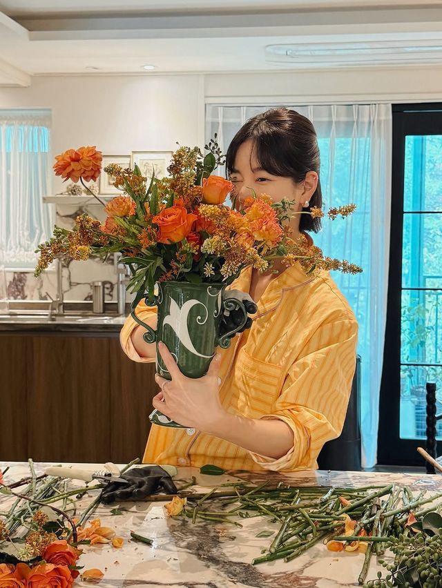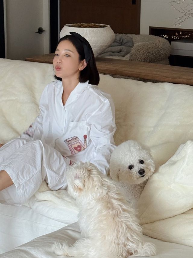 기은세의 파자마 룩은 ‘잠옷’이라는 이름이 무색할 만큼 상큼하다. 컬러 포인트가 들어간 파자마 셔츠, 작은 패턴의 리듬감, 밝은 톤의 집 안 조명까지 모두 그녀의 분위기를 살린다. 겨울밤의 무거움을 덜어내고 싶다면 그녀처럼 밝고 가벼운 컬러를 활용하는 것이 비법. 잠들기 직전까지도 기분 좋은 생기를 채워주는 홈웨어의 정석이다.