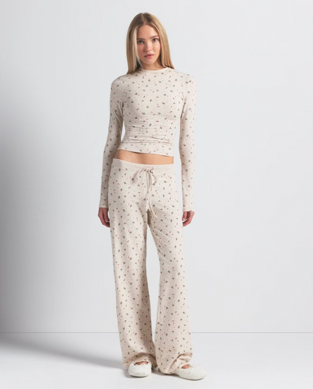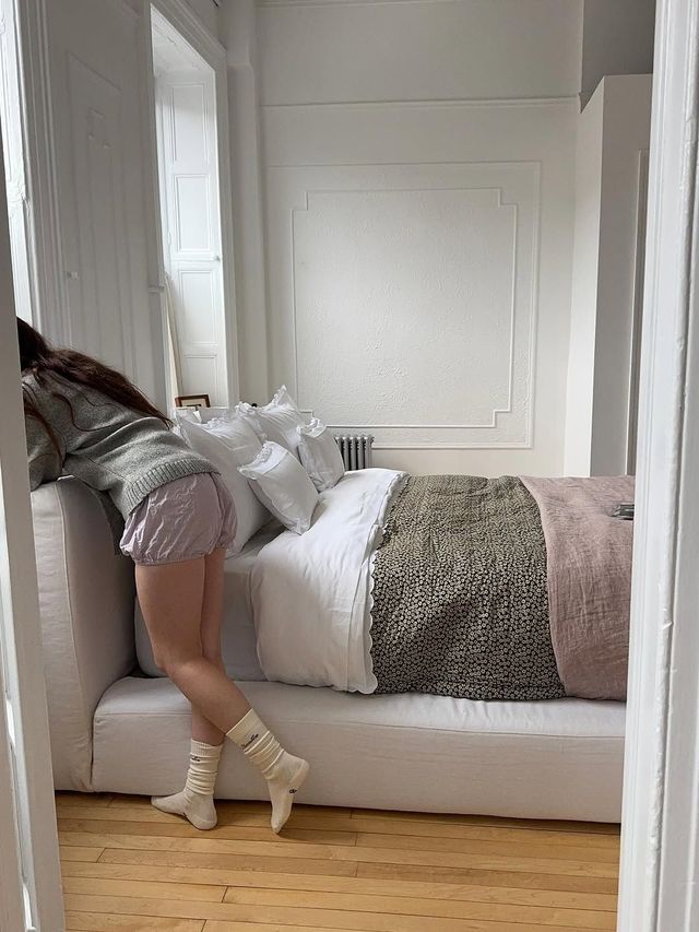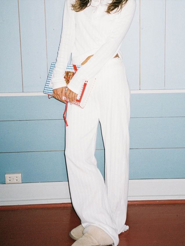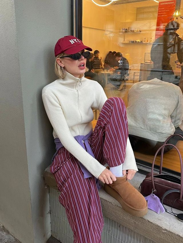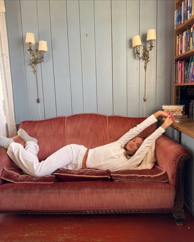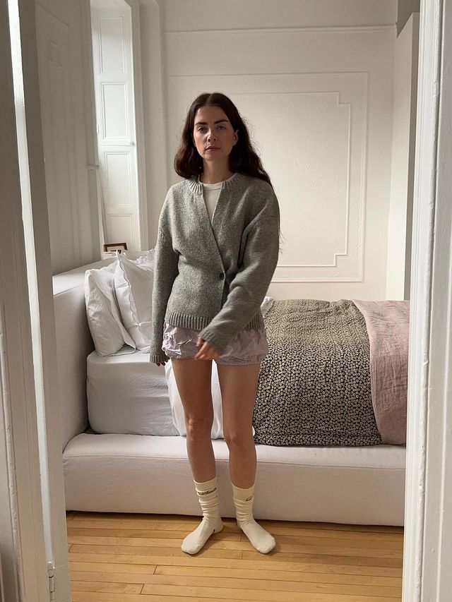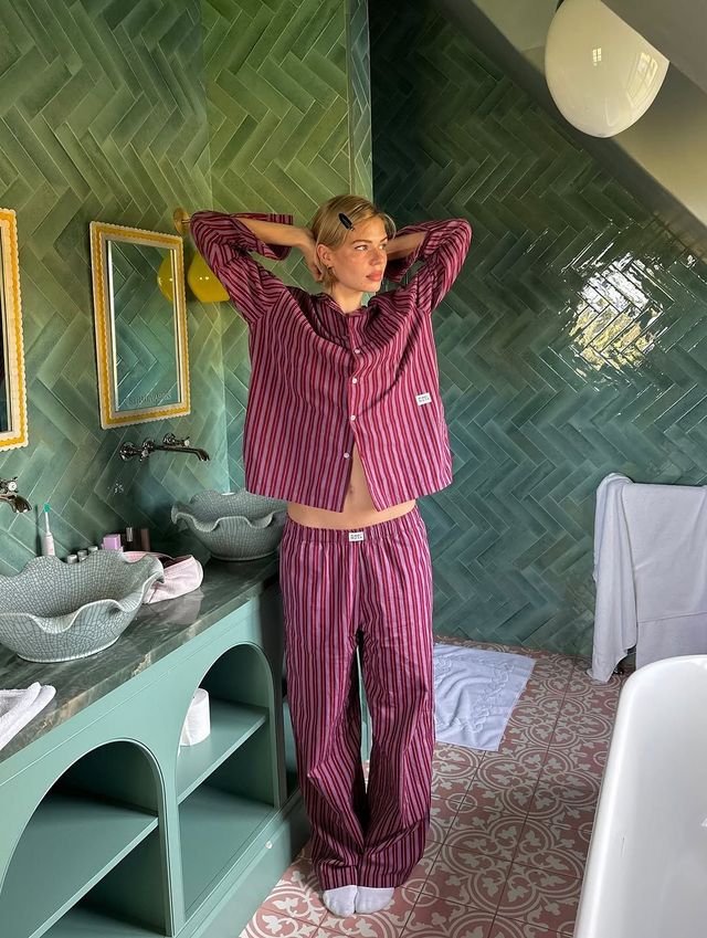 몰리 블럿스타인의 룩은 잠옷이 가진 경계를 가볍게 흐린다. 파자마 셋업 위에 니트나 셔츠를 겹치며, 집에서의 옷차림이 일상적인 스타일로 자연스럽게 이어지는 감각을 보여준다. 겨울밤이 길어지는 계절, 실내와 실외의 무드가 끊기지 않는 라이프스타일에 꼭 맞는 방식이다. 잠옷이라는 아이템을 새로운 맥락에서 활용하는 감각이 요즘 홈웨어 트렌드를 이끄는 지점이다.