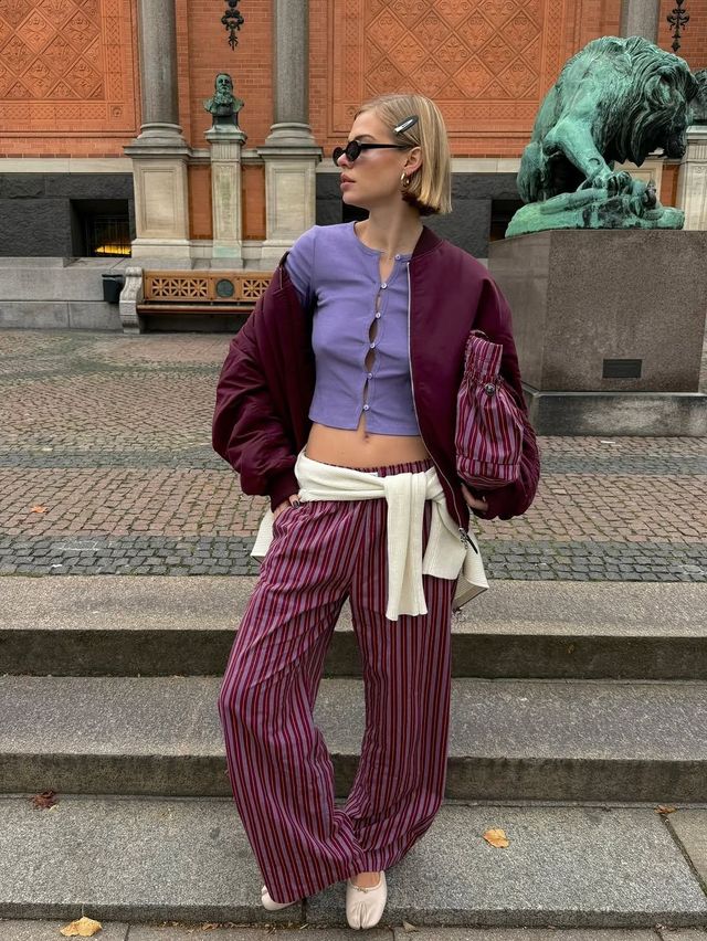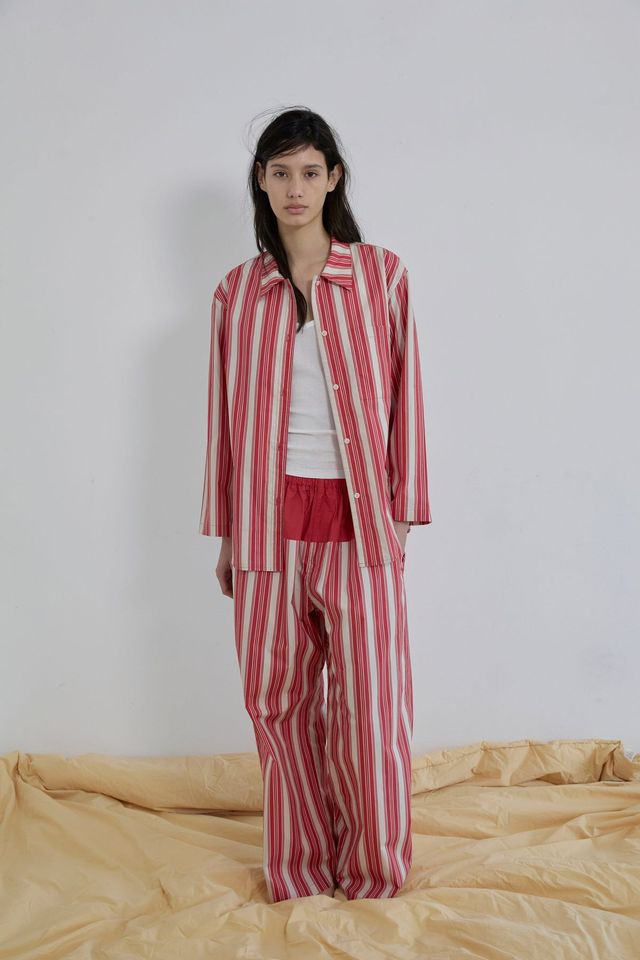 린다는 파자마를 더 이상 집 안의 아이템으로 구분하지 않는다. 재킷이나 패딩과 매치해 외출 룩으로 자연스럽게 확장시키는 방식은 그녀의 트레이드마크. 스트라이프 파자마 팬츠 특유의 경쾌함이 코트와 만나면서 ‘너무 꾸미지 않은 세련됨’이 완성된다. 홈웨어와 데일리룩의 경계를 줄이는 감각, 바로 겨울 시즌 우리가 가장 탐내는 여유다.