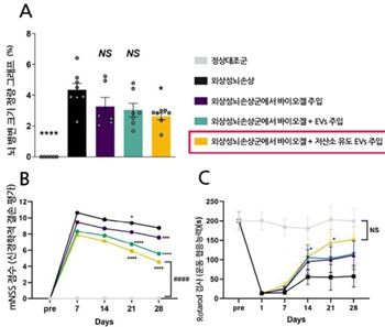 이를 통해 신경재생 및 혈관 신생에 중요한 단백질(VEGF)과 마이크로RNA(miRNA-9)가 풍부한 세포외소포체(EV)를 생산했다.