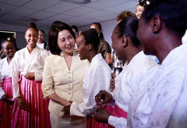 행사 말미에는 한국 문화를 배우고 있는 현지 학생들의 부채춤과 케이팝 공연이 이어졌고, 김 여사는 무대에 오른 학생들을 따뜻하게 격려했다.