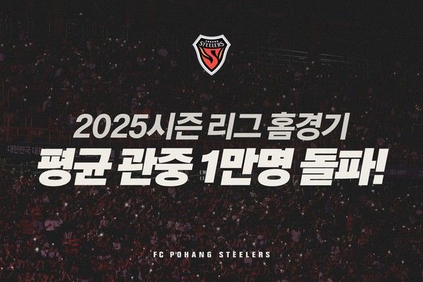 22일 포항은 포항스틸야드에서 열린 전북현대와 홈경기에서 유료관중 10,572명을 기록했다. 마지막 홈경기에서 1만 명을 넘긴 포항은 2025시즌 홈경기 평균 관중 1만 명(10,248명/총 좌석수의 71.8%) 달성에도 성공했다. 2018년 K리그가 유료 관중 집계를 시작한 이후 구단 역사상 첫 기록이다.