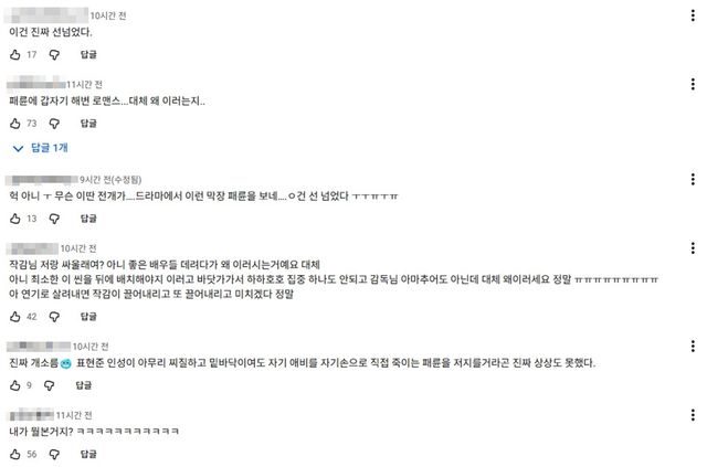 패륜 장면 이후 바로 해변 로맨스 장면이 이어진 연출에 대해서도 "패륜에 갑자기 해변 로맨스, 대체 왜 이러는지?"라는 비판이 쏟아졌다. 한 시청자는 "작가님...좋은 배우들 데려다가 왜 이러시는거예요. 최소한 이 씬을 뒤에 배치해야지 이러고 바닷가가서 하하호호 집중 하나도 안되고"라며 연출 순서에 강한 불만을 표했다.