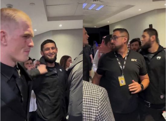 두 파이터는 경기 직후 백스테이지에서 가벼운 대화를 나누던 중 갑작스러운 신경전을 벌였다.