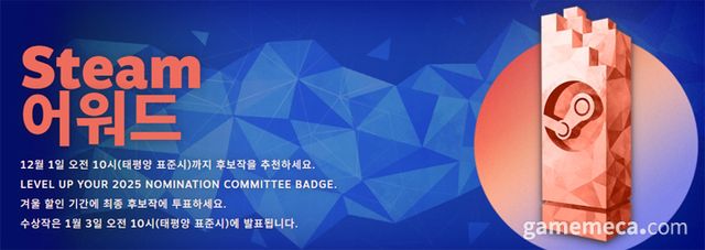 밸브는 11월 25일부터 스팀 공식 페이지를 통해 2025년 스팀 어워드 후보작 추천을 받는다. 2025년 대표작을 뽑는 ‘올해의 게임’을 필두로, 올해의 VR 게임, 최고의 스팀 덱 게임, 뛰어난 비주얼 스타일, 가장 혁신적인 게임플레이, 최고의 사운드트랙, 압도적인 스토리를 자랑하는 게임 등에서 선호하는 게임을 후보로 추천하면 된다.