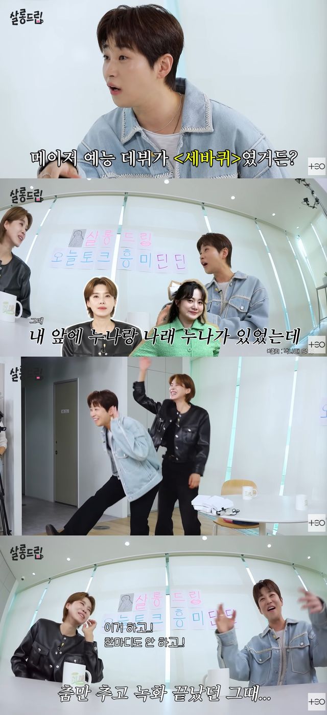 딘딘은 "기억나냐. 내 첫 메이저 예능 데뷔가 '세바퀴'였다. 둘이 '큐'하면 나가서 춤출 때다"라며 박나래와 장도연의 과거를 짚었다.