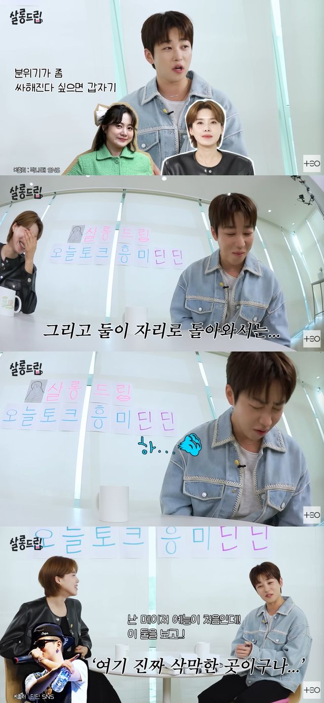 이어 딘딘은 "그 뒤로 둘이 (춤을 추고) 들어와서 물을 마시는데 '어후' 하고 한숨을 내쉬더라"며 "메이저 예능이 처음이었는데, 이 둘을 보고 여기가 진짜 삭막한 곳이구나 싶었다"고 솔직히 이야기했다.