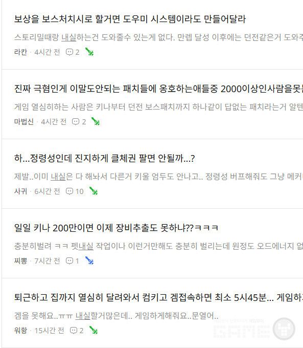 아이온2 공식 커뮤니티에는 "드라웁 수천만 키나 이대로 방치할 거 아니죠?", "키나 및 강화석 회수조치해라", "이미 꿀 빤 애들은 템 다 뽑아놓고 후발대는 사다리만 자르네" 등 항의 글이 쏟아지고 있다. 한 유저는 "선발대는 버그로 수억 키나를 벌었는데 회수 없이 후발대만 200만 제한이면 격차가 더 벌어지는 것 아니냐"며 "이게 격차 완화 패치인지 격차 심화 패치인지 모르겠다"고 비판했다.
