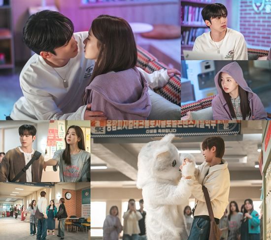이어 ‘융테콘(융합피지컬테크놀로지글로벌콘텐츠개발학부)’ 라운지 한복판에서 벌어진 소동이 눈길을 끈다. 어쩐 일인지 모델학과 학생과 대치 중인 주연산, 양나래(권영은), 강동원(민서)의 날 선 모습이 예사롭지 않다. 이들 뒤로 무언가 고민하는 듯한 강민학 얼굴도 흥미롭다. 여기에 격렬한 실랑이를 벌이고 있는 고양이탈을 쓴 정체불명 인물의 등장까지, 과연 이들에게 무슨 일이 일어난 것인지 궁금증을 더한다.
