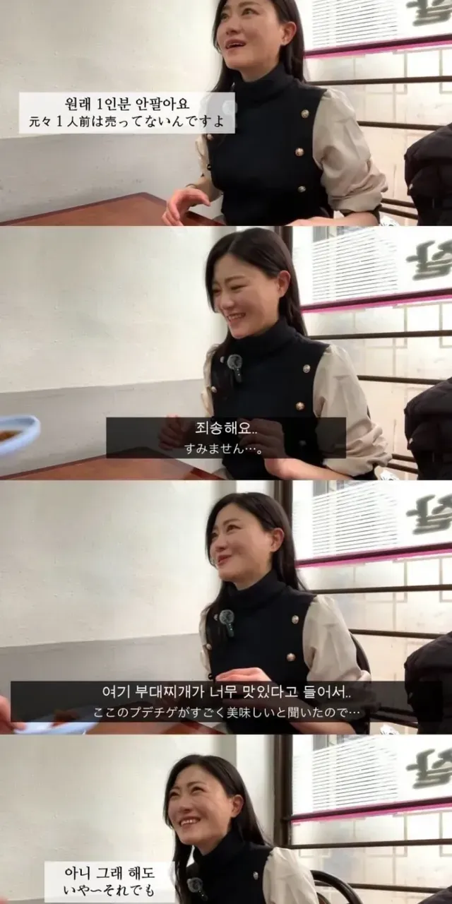 일본인 유튜버가 한국에서 혼자 부대찌개 먹으러 가서 들은말