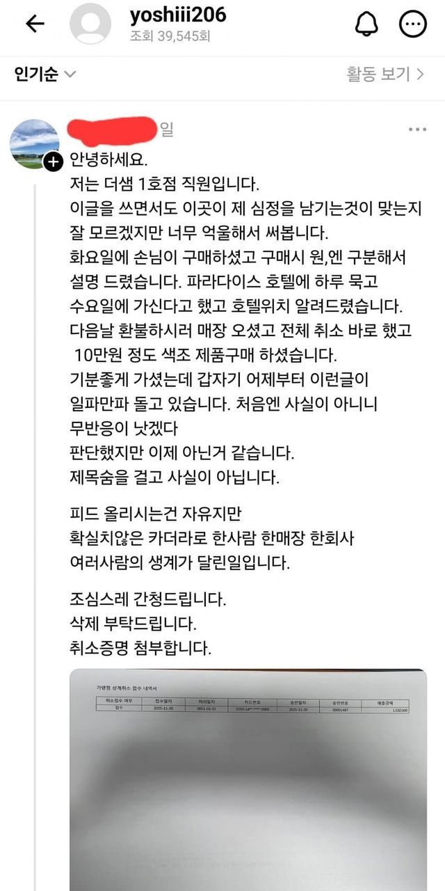 해당 사건의 직원이 직접 등판해 억울함을 호소하며 상황은 반전됨