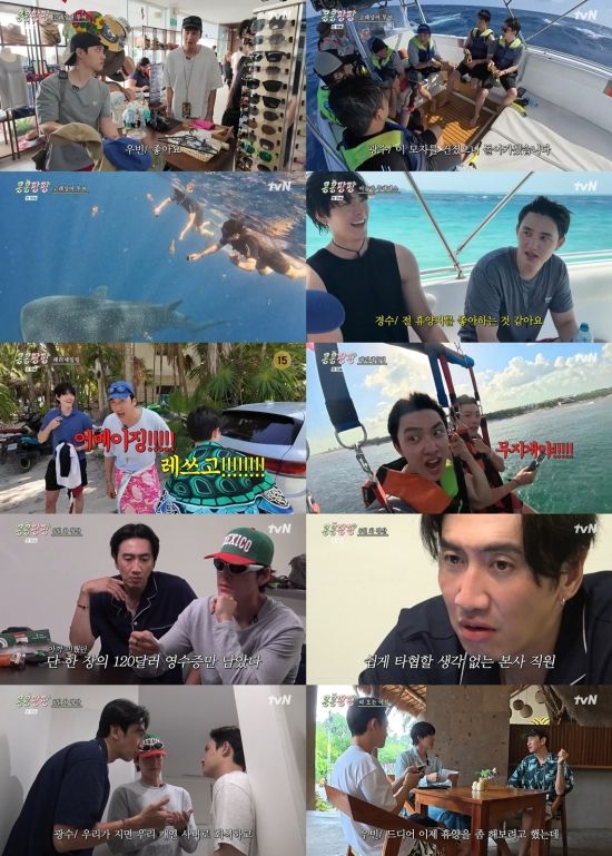 지난 28일 방송된 tvN ‘콩 심은 데 콩 나서 웃음팡 행복팡 해외탐방(연출 나영석, 하무성, 심은정)’(이하 ‘콩콩팡팡’) 7회에서는 이광수, 김우빈, 도경수가 고래상어 투어와 패러세일링, 특별 경비 승인까지 과정은 험난했으나 결과는 좋은 하루를 보냈다.