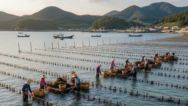 김을 수확하는 모습의 자료사진. AI가 생성한 자료사진. (실제와 차이가 있을 수 있음을 밝힙니다.)