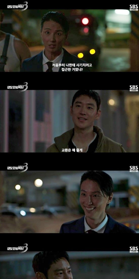 지난 29일 방송된 SBS 금토드라마 '모범택시3' 4회에서는 중고차 범죄 카르텔의 정점에 서있는 빌런 차병진(윤시윤)에게 제대로 참교육을 시전하는 김도기(이제훈)의 모습이 그려졌다.