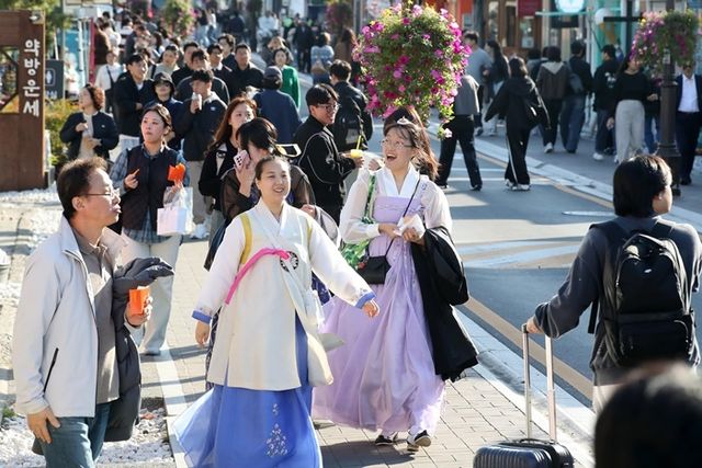 최근 황리단길이 전국적인 명소로 자리 잡은 데에는 MZ세대의 영향이 크다. 소셜네트워크서비스를 통한 맛집 탐방과 인증샷이 활발해지면서 자연스럽게 홍보 효과가 발생했다. 덕분에 계절과 상관없이 다양한 여행객이 몰리며 경주의 대표 골목 관광지로 입지를 더욱 단단히 다졌다. 특히 올해는 APEC 정상회의로 수많은 방문객이 경주를 찾았고, 외국인 관광객 수가 지난해 대비 큰 폭으로 늘었다.