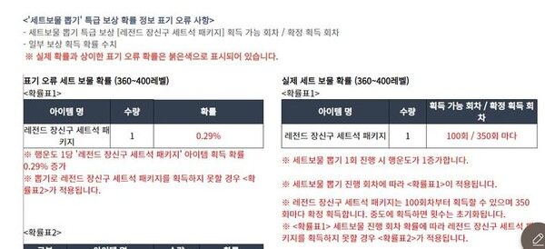 웹젠은 이런 '바닥 시스템'이 있다는 사실을 숨기고, 각 아이템을 구매했을 때 획득할 수 있는 희귀 아이템의 획득 확률을 0.25~1.16%라고만 명시했다.