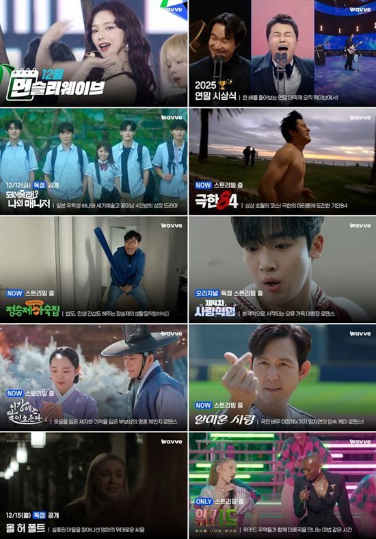(엑스포츠뉴스 김예은 기자) 웨이브(Wavve)가 연말 시즌 신규 콘텐츠 라인업을 공개했다.
