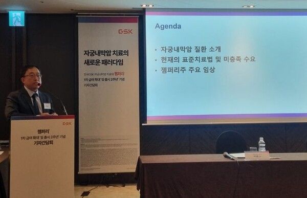 뉴시스 보도에 따르면, 박정열 서울아산병원 산부인과 교수는 1일 한국GSK가 서울 플라자호텔에서 개최한 기자간담회에서 "제한적인 자궁내막암 치료에 면역항암제가 새로운 표준치료로 잡리잡고 있다"며 이같이 밝혔다.