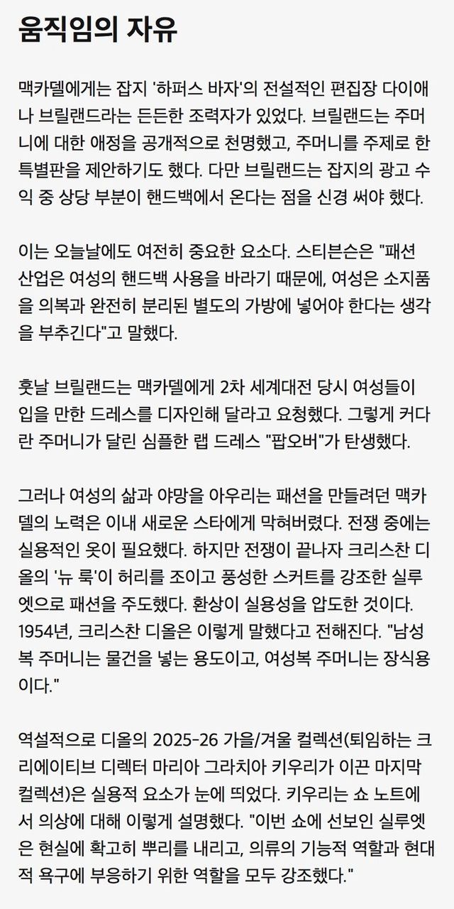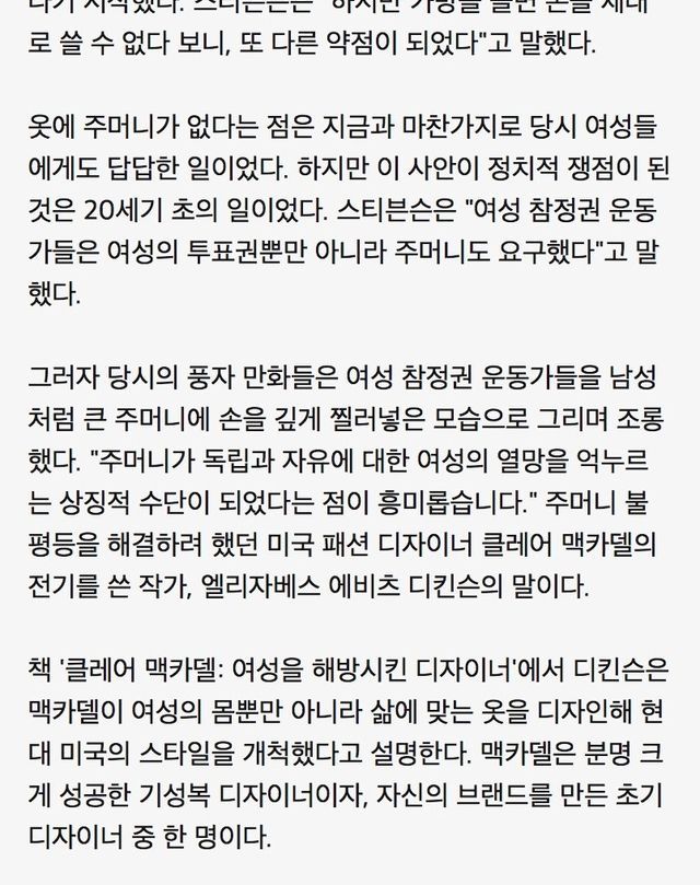 왜 여성복은 주머니가 없거나 작을까?