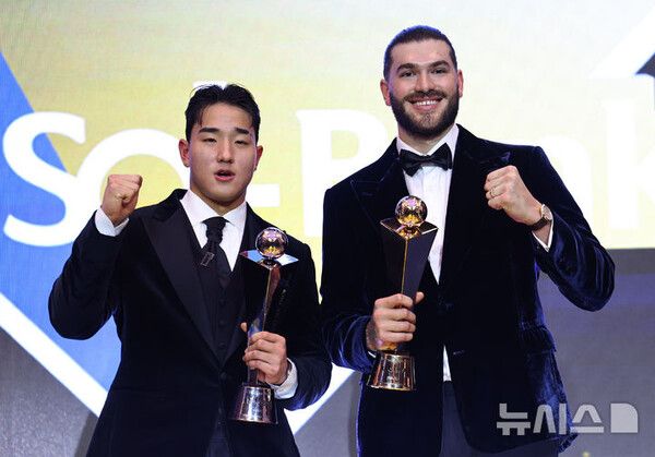 뉴시스 보도에 따르면, 폰세와 안현민은 2일 서울 강남구 역삼동 라움아트센터에서 열린 '2025 조아제약 프로야구 대상' 시상식에서 대상을 수상했다.