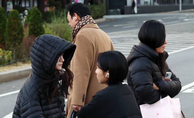 시민들이 잔뜩 움츠린 채 이동하고 있다 / 뉴스1
