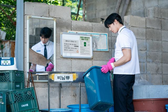 이번에 공개된 재원의 캐릭터 스틸 역시 ‘남친짤’의 정석을 보여 주며 첫사랑에 빠진 고등학생의 모습을 제대로 담아냈다. 학교에서 당번으로 쓰레기통을 비우고 있거나, 등굣길 버스에서 이어폰으로 노래를 듣고 있는 재원의 스틸 등은 평범한 고등학생의 하루하루를 생생하게 표현했다.