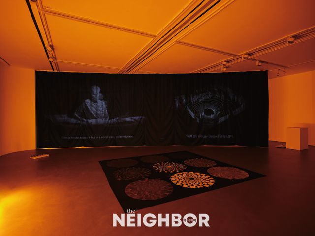 차연서, ‘서른여덟, 천국’, 2022~2023, 2채널 프로젝션, 흑백, 사운드, 방수 커튼, 1시간. 사진 이의록.