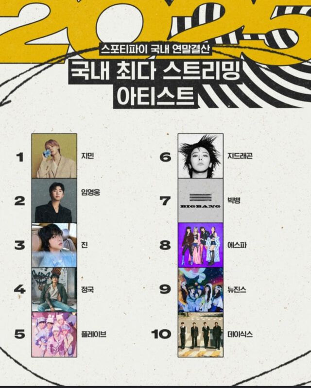 가수 임영웅이 올해 스포티파이 한국에서 두 번째로 많이 스트리밍된 아티스트로 선정됐다. 한국시간 기준 스포티파이가 공개한 연간 차트에서 1위는 지민, 3위는 진, 4위는 정국, 5위는 플레이브가 차지하며 K팝 아티스트들의 강세가 확인됐다.