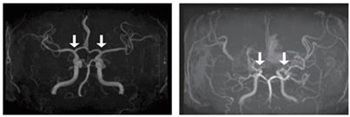 (사진 왼쪽부터 : 정상 및 모야모야병 환자의 뇌혈관)