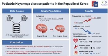희귀난치성 뇌혈관질환 ‘소아 모야모야병’의 발생 양상과 치료 및 예후를 전국 단위로 분석한 결과가 발표됐다. 유병률은 지속적으로 증가한 반면 신규 발생률은 감소한 것으로 나타났다.