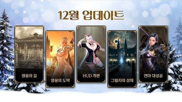 먼저, 12월에는 ‘플레이 경험 쾌적화’ 그리고 ‘성장의 도약’을 키워드로 내실을 다지는 대규모 업데이트가 진행된다. 먼저, 새로운 성장 시스템 ‘영웅의 길’을 추가하며, 기존의 반복적 이동과 로딩, 장비 교체와 스킬 세팅 등 불필요한 요소를 최소화해 전투 흐름만 이어지는 구조로 정비한다.