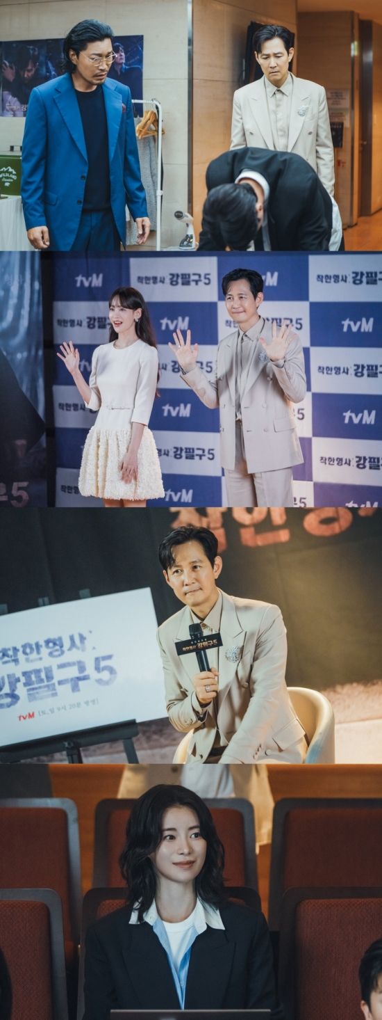 tvN 월화드라마 ‘얄미운 사랑’ 측은 11회 방송을 앞둔 15일, 임현준(이정재 분)부터 위정신(임지연), 황대표(최귀화), 박병기(전성우) 그리고 권세나(오연서)까지 총출동한 ‘착한형사 강필구 시즌 5’의 제작발표회 현장을 공개했다.