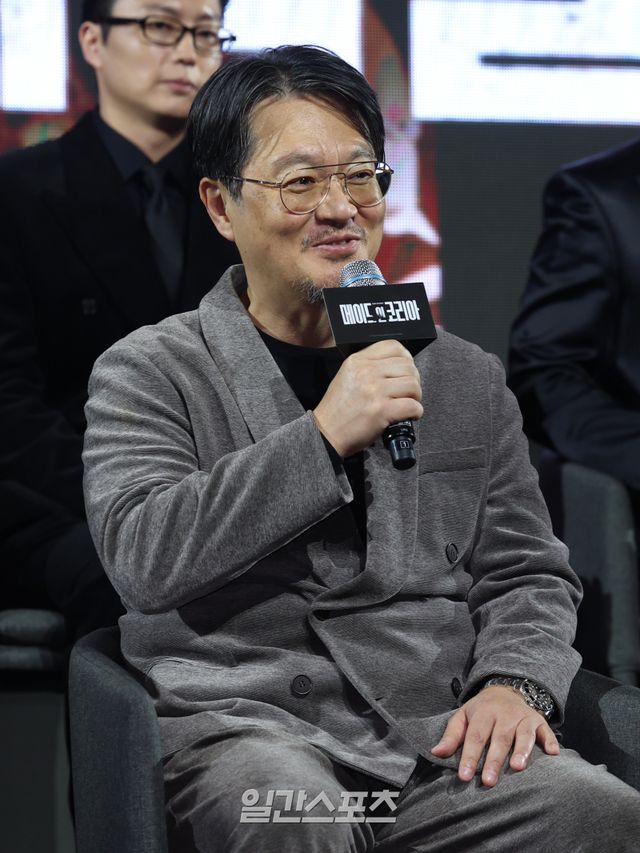 우민호 감독이 15일 오전 서울 강남구 그랜드 인터컨티넨탈 서울 파르나스에서 열린 디즈니+ 오리지널 '메이드 인 코리아' 제작발표회에 참석해 인사말을 하고 있다. '메이드 인 코리아'는 부와 권력에 대한 야망을 지닌 남자와 그를 막기 위해 모든 것을 내던진 검사, 시대의 소용돌이 속 펼쳐지는 이야기. 오는 24일 공개. 서병수 기자 qudtn@edaily.co.kr /2025.12.15/