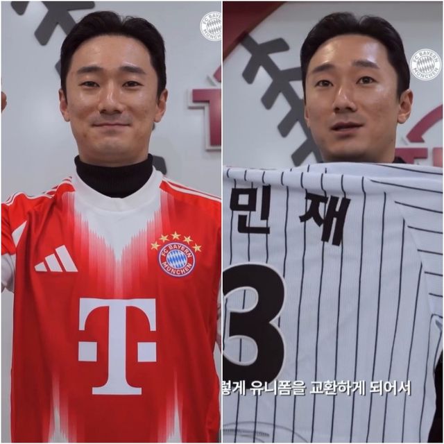 한국 야구 대표팀 내야수 신민재(29)와 동갑내기 한국 축구 국가대표 김민재(FC 바이에른 뮌헨)의 축하 인사에 이어 유니폼까지 주고 받으며 뜨거운 관심을 얻고 있다.