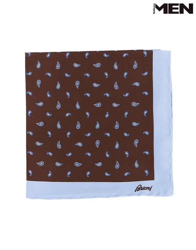 Brioni 페이즐리 패턴 실크 포켓 스퀘어.