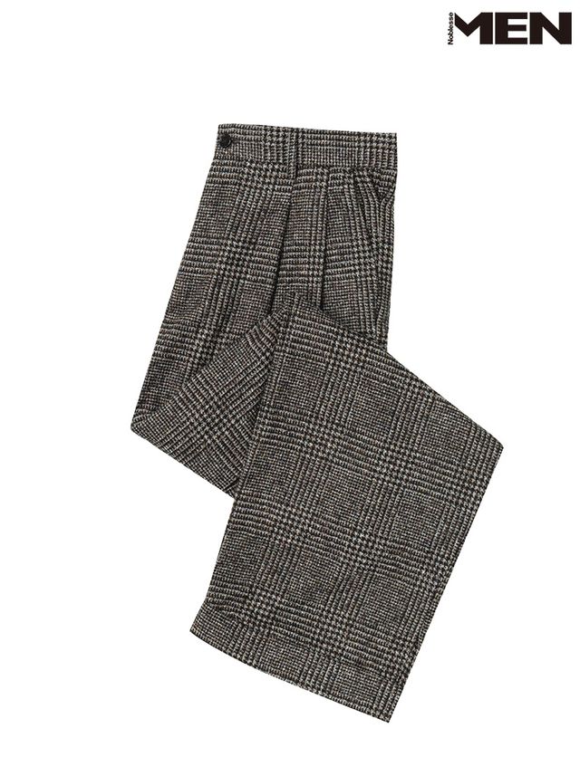 Ferragamo 하운즈투스 패턴 핀턱 트라우저.
