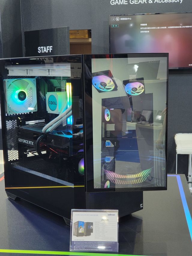 PC 케이스는 전면 먼지 필터를 슬라이드 방식으로 제거할 수 있는 잘만 Z10 DUO, 전면부에 15.6인치 IPS 디스플레이가 탑재된 잘만 Z10 DS 등을 확인할 수 있었다.