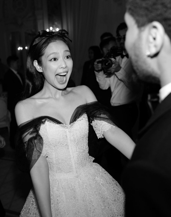 이날 제니는 앰버서더로 활동하고 있는 샤넬 드레스를 입고 릴리 로즈 뎁, 위캔드, 트로이 시반 등과 함께 레드카펫을 밟았다.