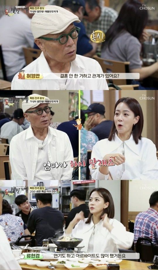 류현경이 지난 22일 방송한 TV조선 '식객 허영만의 백반기행'에 출연해 결혼에 관한 질문을 받았다.