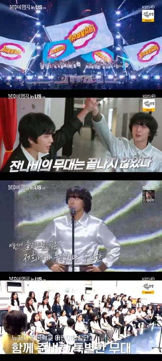 25일 방송된 KBS 2TV 예능 프로그램 '불후의 명곡'(이하 '불후')는 '불후의 명곡 in US 특집' 2부로 특별 기획됐다. 특히 2부에서는 밴드 잔나비가 뉴저지 한국학교 어린이합창단과 함께 특별한 무대를 펼치는 모습이 그려졌다.