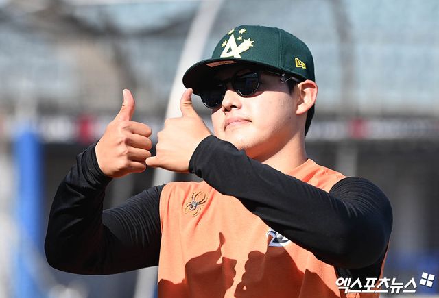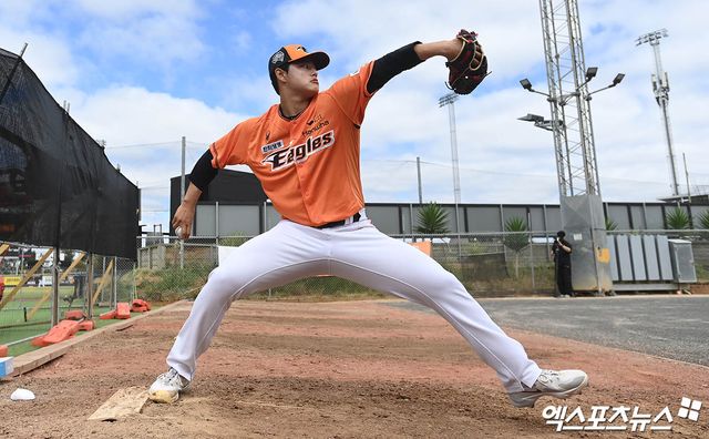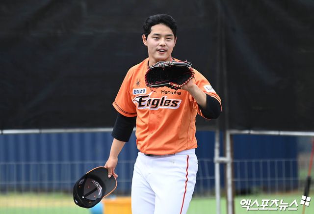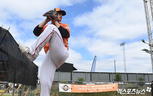 한화의 2차 스프링캠프가 진행 중인 일본 오키나와 고친다구장에서 만난 문동주는 "부담감이 많았는데, 우리 팀에 좋은 선배님이 오셔서 부담감은 조금 적어진 것 같다. 내가 원래 하려고 했던 대로 잘하려고 생각하고 있다"고 얘기했다.