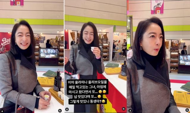 영상 속 노현정은 올리브를 마시며 "부드럽고 고소하고 혼자 먹기 아까운 건강한 맛"이라고 소감을 밝혔다. 또한 카메라를 향해 밝은 미소를 짓고있다.