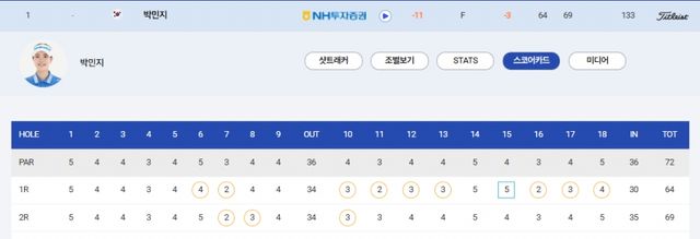 2R : 3언더파 69타(버디 3개) 합계 11언더파 133타 1위