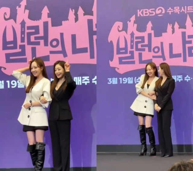 공개된 동영상에서는 소유진과 오나라가 KBS 2TV '빌런의 나라' 제작보고회에서 포즈를 취하는 모습이 담겨 있다.