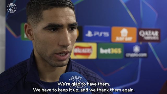 하키미는 "행복하다. PSG 팬들 모두가 행복했으면 좋겠다. 챔피언스리그는 쉬운 경기가 없다. 우리는 어려운 싸움을 했지만, 어떻게 하면 승리할 수 있는지 알고 있었다. 아직 남은 경기가 많다. 속도를 늦출 수 없다"며 "항상 팬들에게 감사드린다. 대회 기간 내내 특히 파리에서 열린 모든 경기에서 저희를 응원해 주셨다. 팬분들이 계셔서 정말 기쁘다. 앞으로도 많은 응원 부탁드린다"라고 인사를 마쳤다.