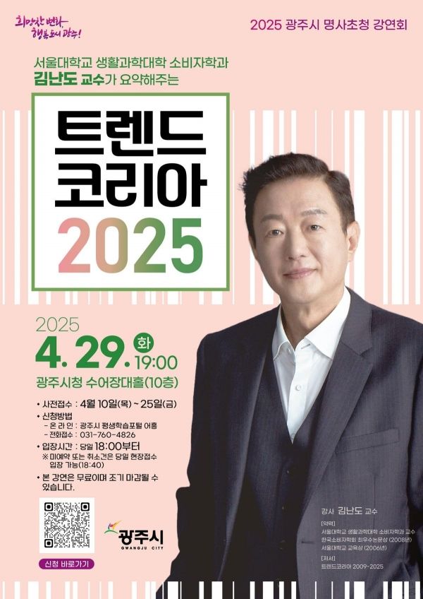 광주시가 오는 29일 ‘2025년 제1회 명사 초청 강연회’를 개최한다.