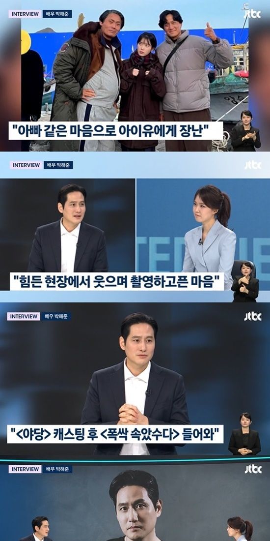 앞서 아이유가 박해준에 대해 '현장에서 너무 유쾌하고 만날 때마다 늘 개그를 건네셨다'고 말한 부분이 언급되자 박해준은 "현장에서 아빠 같은 마음으로, 그냥 좀 '웃는 얼굴 한 번 봐야지' 하는 심정으로 장난을 쳤었다"고 고백했다.