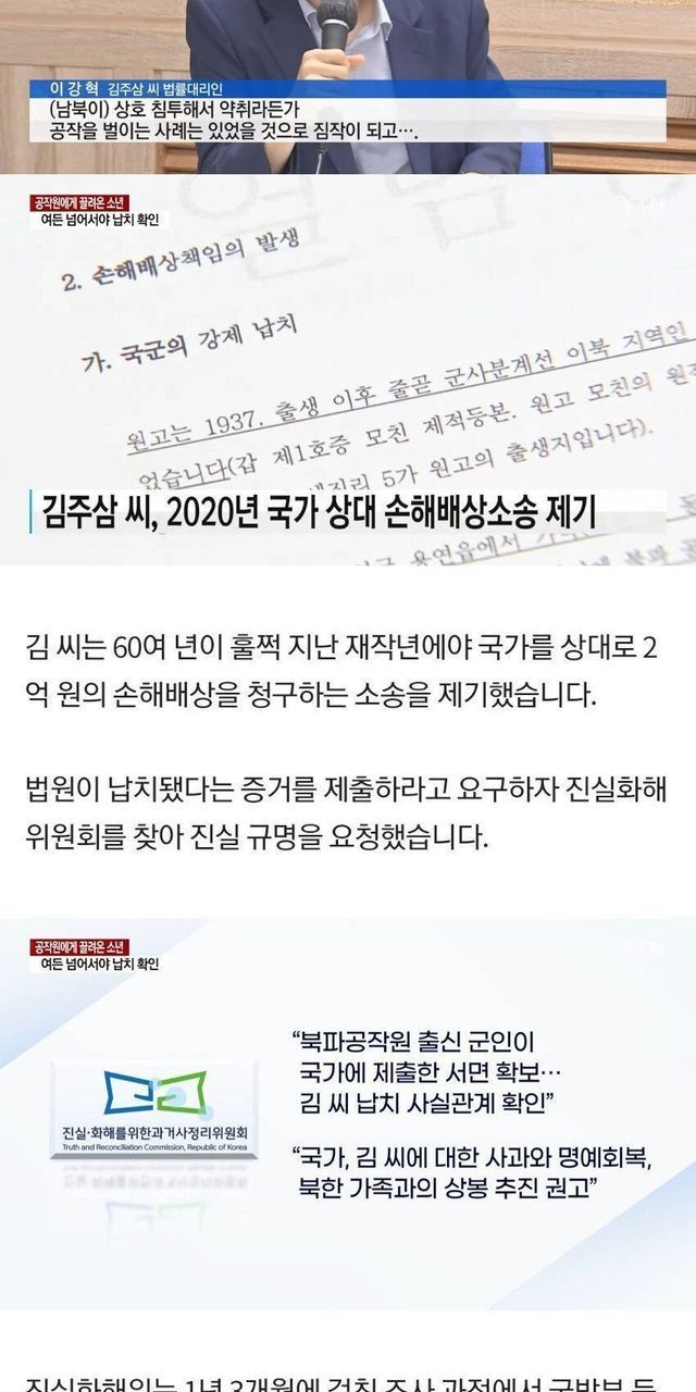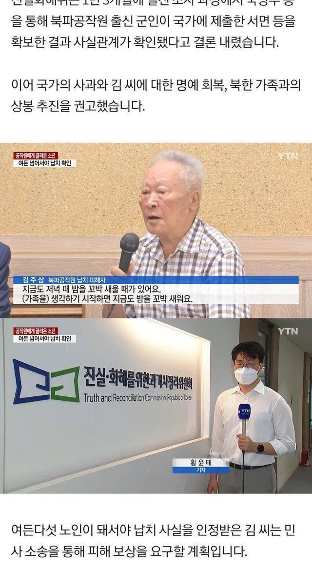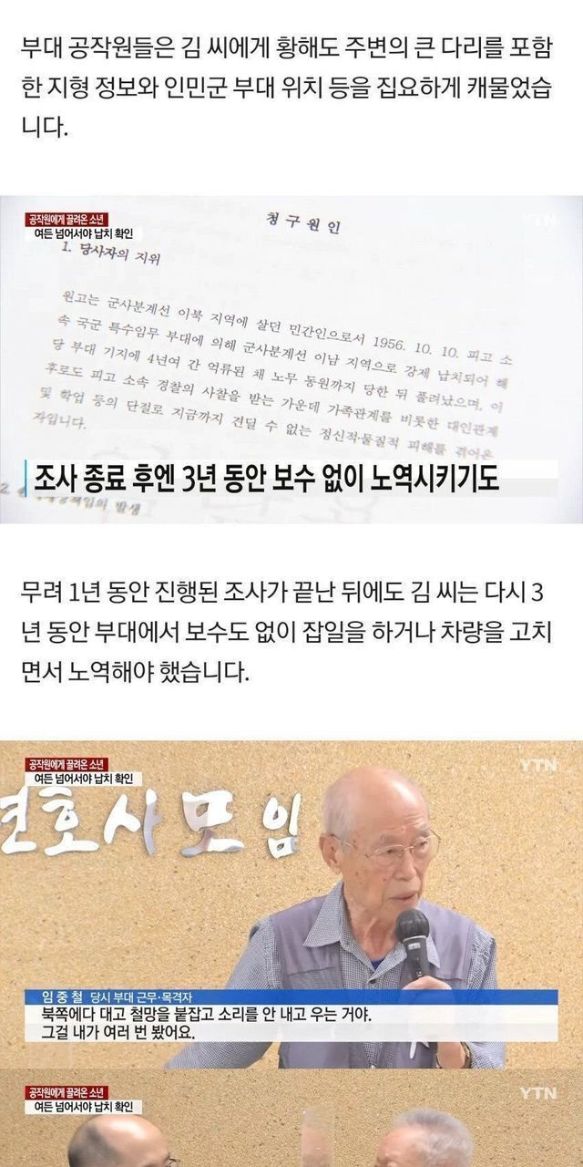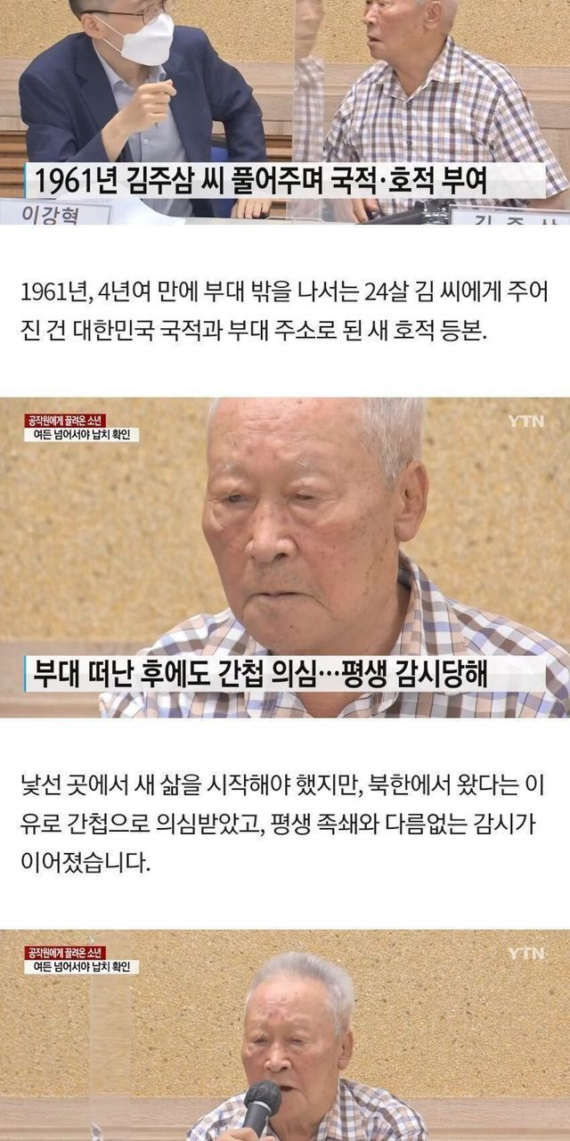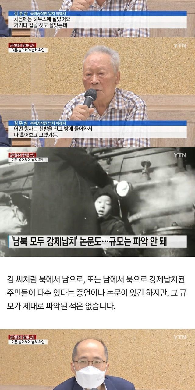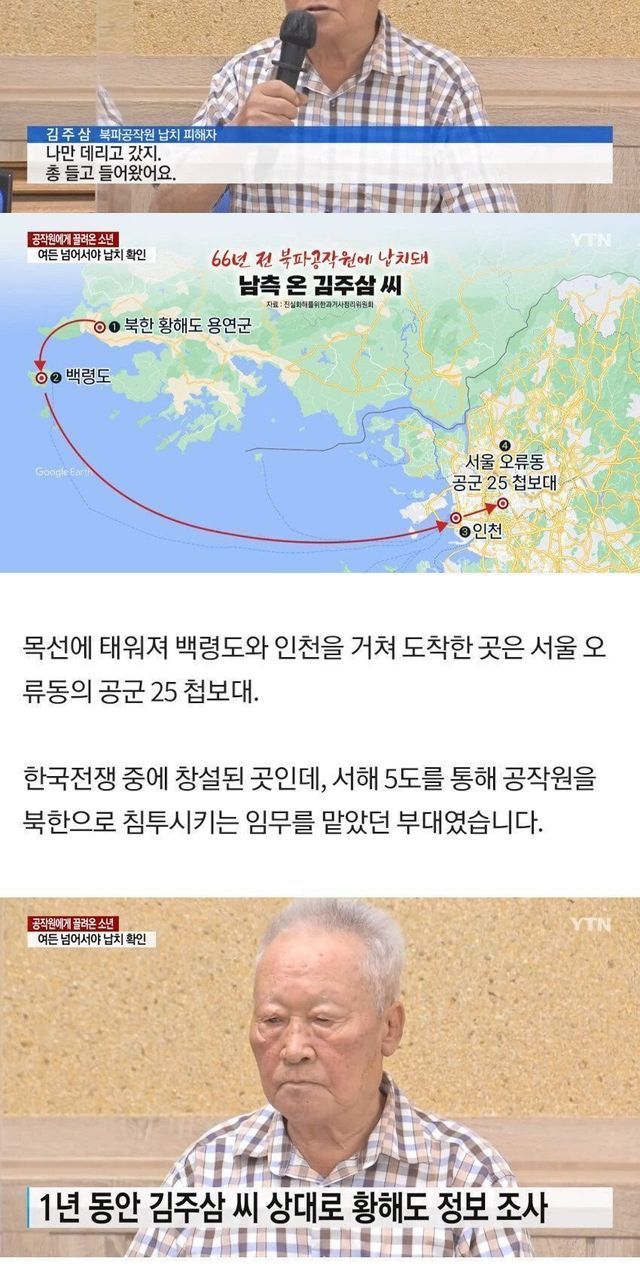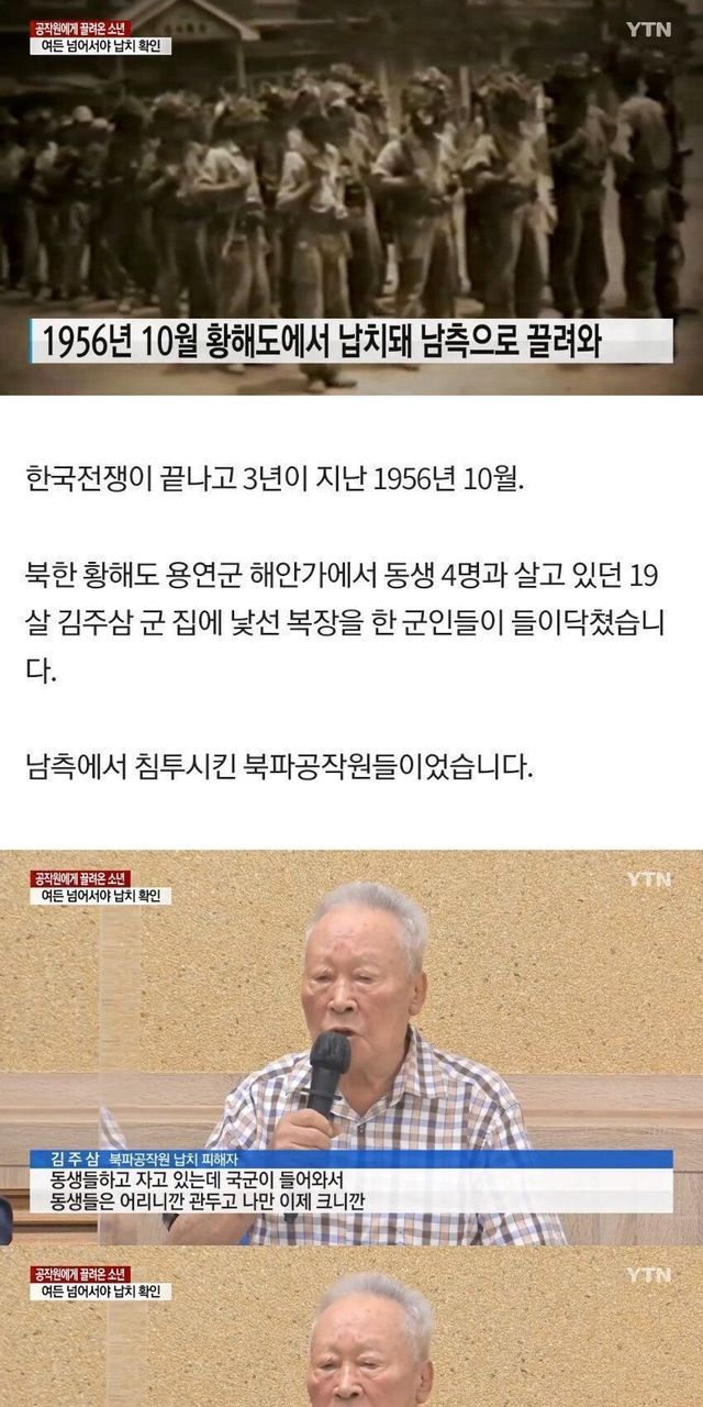 그러다 남한에서 북파된 국군 공군첩보대 소속 군인들이 총을 들이밀었음. “적지에 들어가서 아무나 납치해 오라”는 명령을 받은 그들은 가장 나이가 많은 김주삼씨를 서울로 끌고 왔다고 함.