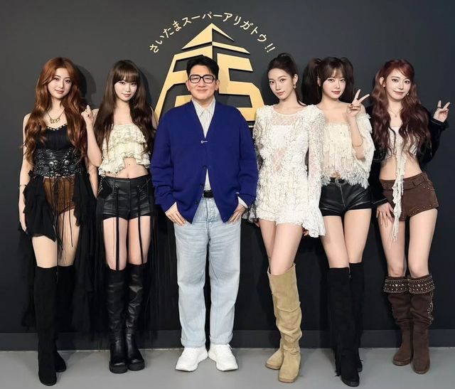 하이브 의장 방시혁이 르세라핌과 함께한 모습을 공개했다.