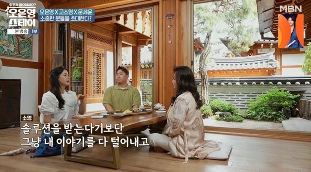 이에 고소영은 “나한테 필요하다. 내가 평상시에 그렇게 푼다. 뭔가 솔루션을 받는다기보다 그냥 내 이야기를 털어놓고 집에 오면 해소가 된다”며 공감을 표했다.